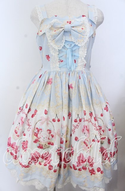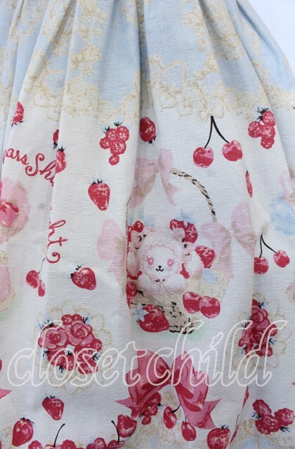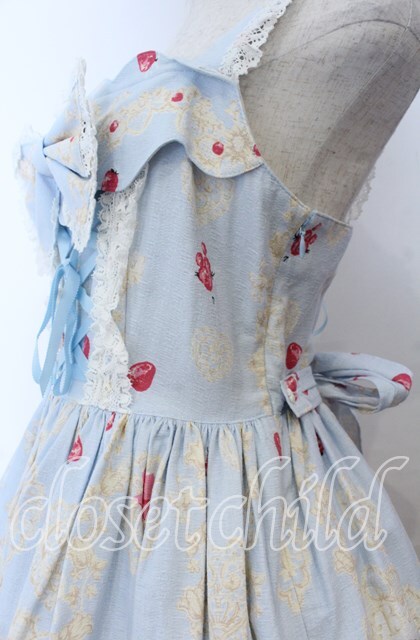 BABY,THE STARS SHINE BRIGHT / なかよしくみゃちゃんのいちごとレースのミルフィーユ柄ジュディジャンパースカート リリアンちゃんいろ(サックス) O-25-11-07-083-BA-OP-OW-OS