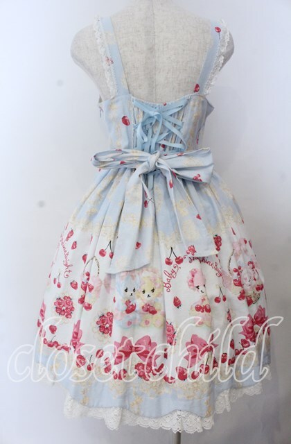 BABY,THE STARS SHINE BRIGHT / なかよしくみゃちゃんのいちごとレースのミルフィーユ柄ジュディジャンパースカート リリアンちゃんいろ(サックス) O-25-11-07-083-BA-OP-OW-OS [2100080000063685-O-25-11-07-083-BA-OP-OW-OS]