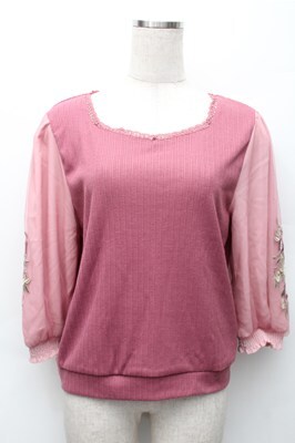 axes femme / 花刺繍チュール袖七分袖プルオーバー ピンク S-25-11-07-022-AX-TO-HR-ZS