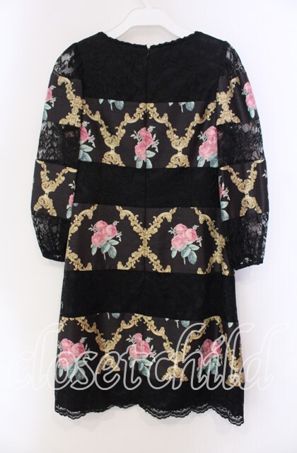 JESUS DIAMANTE / バロックガールワンピース 38 ベルサイユローズ柄 クロ O-25-11-08-039-JE-OP-IG-OS