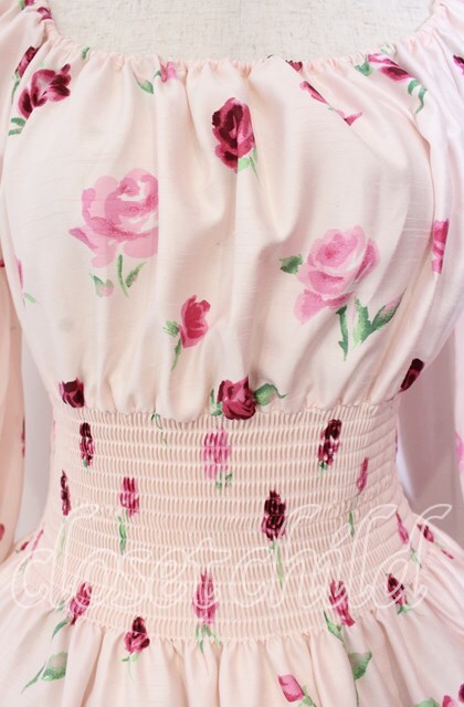 JESUS DIAMANTE / スペシャルバルーンスリーブワンピ 40 オーナメントリボン柄 ピンク O-25-11-08-004-JE-OP-IG-OS