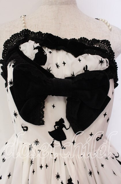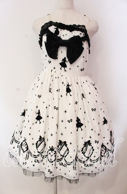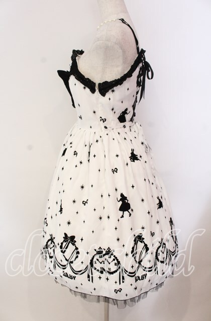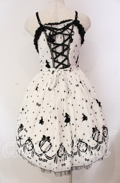 BABY,THE STARS SHINE BRIGHT / Alice and the Looking Glass of Time柄 ジャンパースカート シロ×クロ O-25-11-08-012-BA-OP-IG-OS