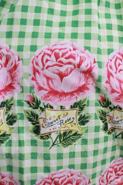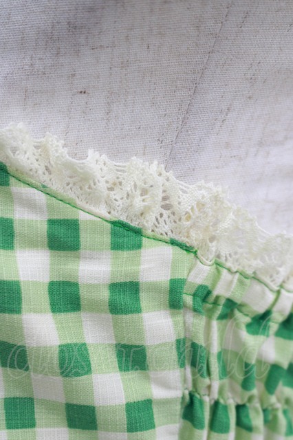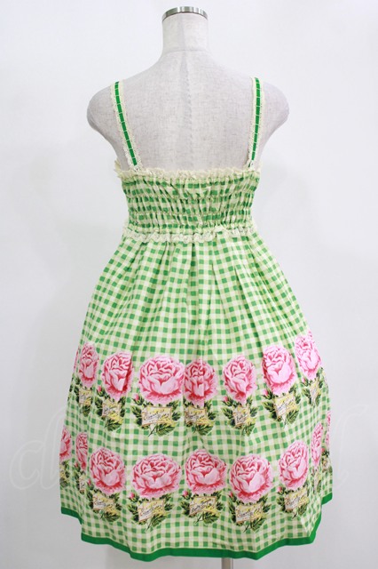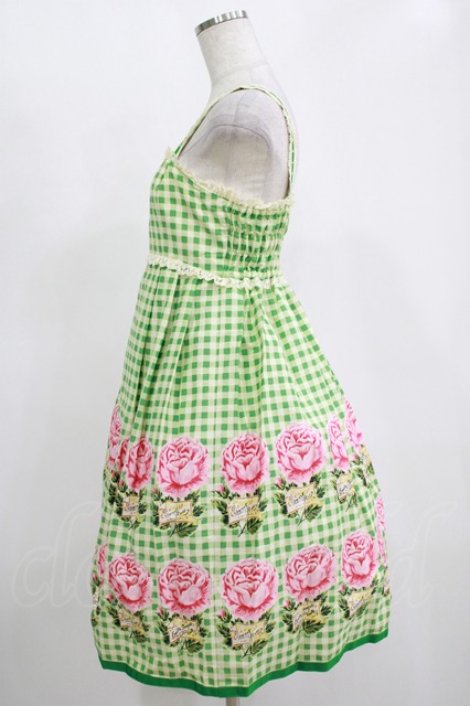 Emily Temple cute / ギンガム&バラノースリーブワンピース グリーン H-25-11-14-1003-ET-OP-KB-ZH
