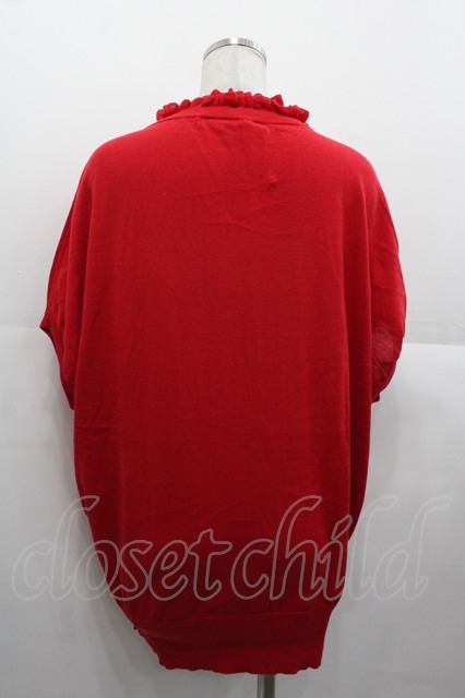 Jane Marple Dans Le Salon / フリル半袖カーディガン 赤 I-25-11-07-021-JM-TO-SA-ZI