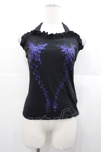 BPN / 蝶編み下げラメプリントベアトップス 黒X紫 I-25-11-07-028-GO-TO-SA-ZI