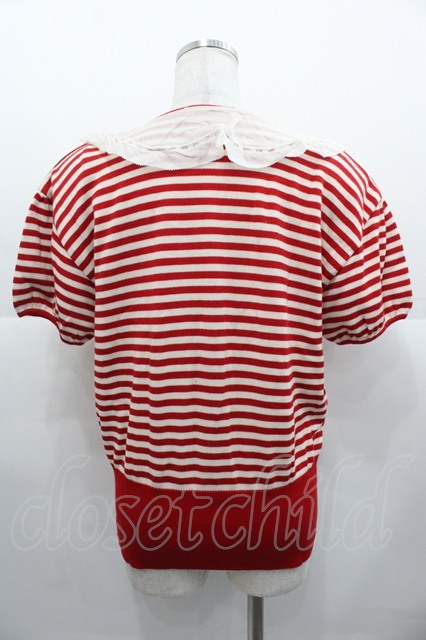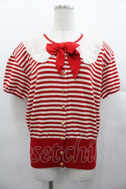 PINK HOUSE / 襟付きボーダーリボン半袖カーディガン 赤X白 I-25-11-07-032-LO-TO-SA-ZI [2100060000035721-I-25-11-07-032-LO-TO-SA-ZI]