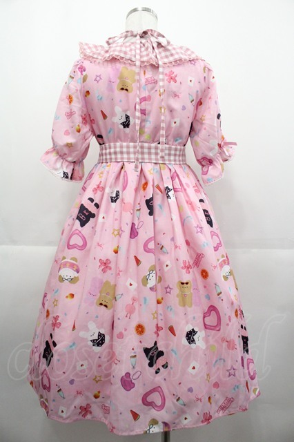 axes femme kawaii / ハッピーバカンス柄ワンピース ピンク I-25-11-07-060-AX-OP-SA-ZI [2100060000043739-I-25-11-07-060-AX-OP-SA-ZI]