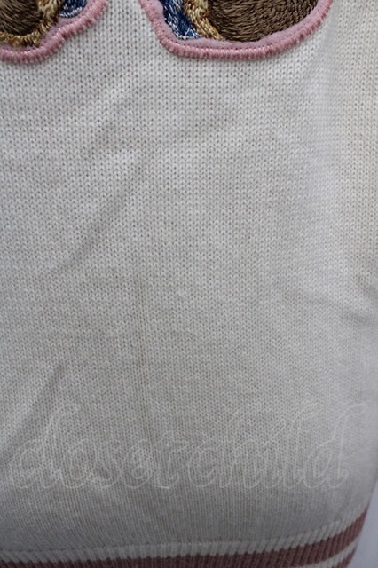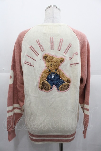 PINK HOUSE / オーバーオールくまさんワッペンニットカーディガン 白Xピンク I-25-11-07-037-LO-TO-SA-ZI
