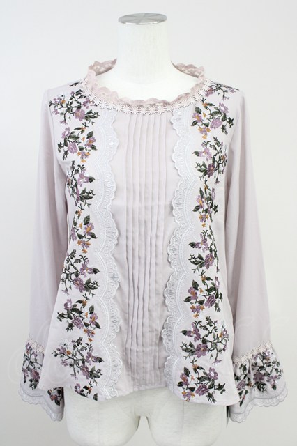 axes femme / ミュルーズ染織美術館コラボ/刺繍入りフレア袖ブラウス M グレージュ T-25-11-09-017-AX-BL-SA-ZT