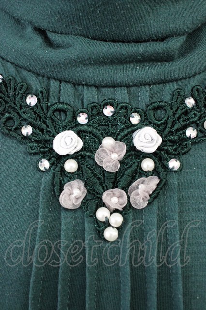 axes femme / 巻き薔薇レースハイネックカットソー グリーン T-25-11-09-020-AX-TO-SA-ZT