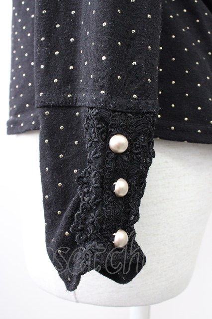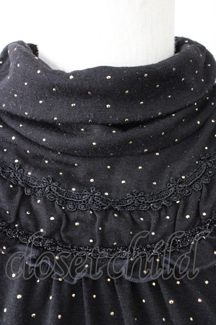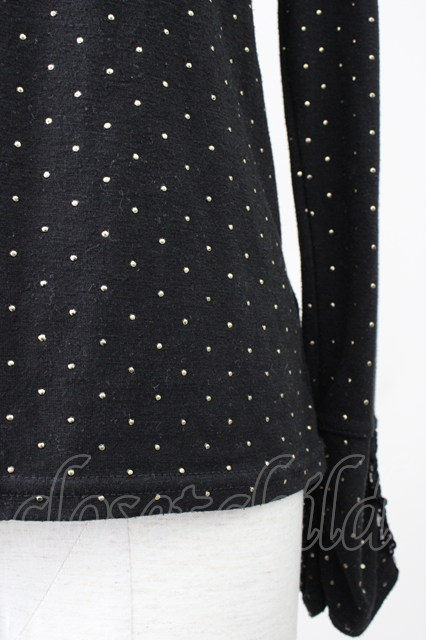 axes femme / ハイネックドットカットソー 黒Xゴールド T-25-11-09-022-AX-TO-SA-ZT