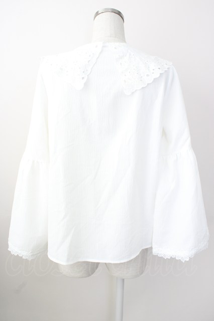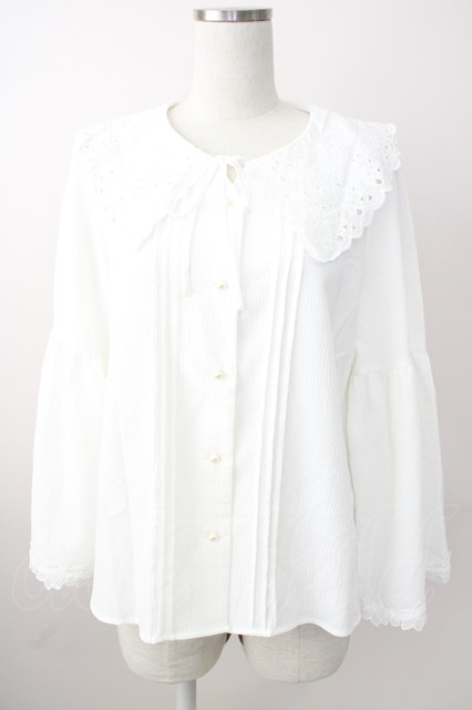 axes femme / 刺繍入りビッグカラーブラウス M ホワイト T-25-11-09-034-AX-BL-SA-ZT