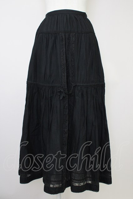 PINK HOUSE / フロント縦レース&裾ピンタックスカート 黒 T-25-11-09-045-LO-SK-SA-ZT [2100060000033872-T-25-11-09-045-LO-SK-SA-ZT]