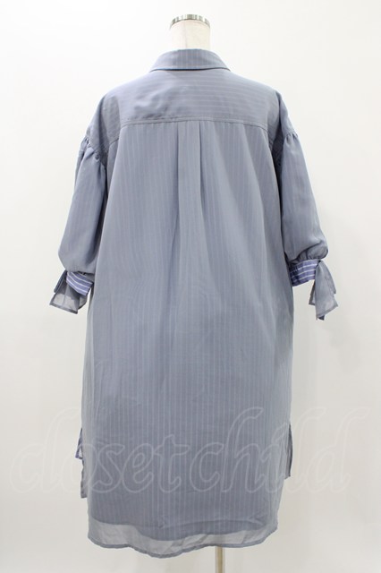 axes femme POETIQUE / シフォンストライプシャツワンピース M サックス H-25-11-16-1012-AX-OP-NS-ZH