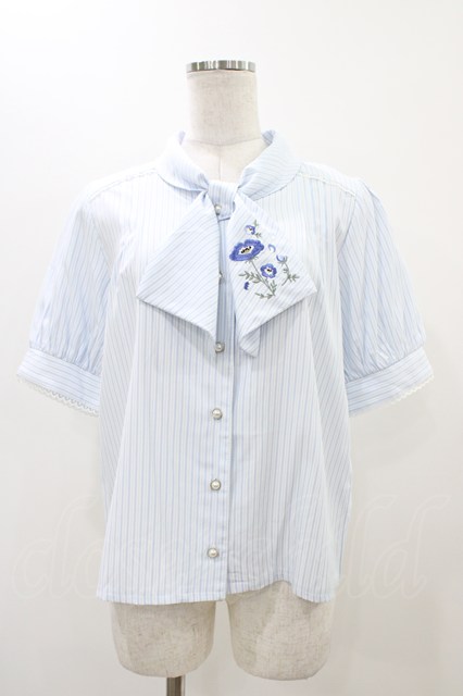 axes femme / ネモフィラ刺繍リボンブラウス Free サックスストライプ H-25-11-16-1042-AX-BL-NS-ZH