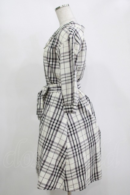 MAJESTIC LEGON / ウエストリボン付きチェックワンピース M アイボリー H-25-11-15-1028-LO-OP-NS-ZH [2100030000077939-H-25-11-15-1028-LO-OP-NS-ZH]