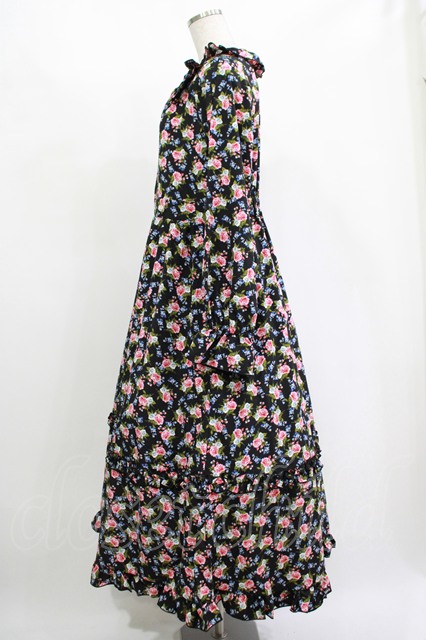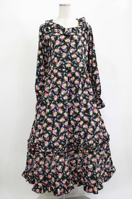 FLC / 星名桜子/2WAY花柄フリルワンピース L ブラック H-25-11-15-1007-LO-OP-NS-ZH [2100030000077901-H-25-11-15-1007-LO-OP-NS-ZH]