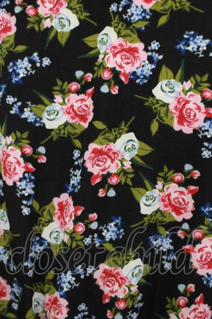 FLC / 星名桜子/2WAY花柄フリルワンピース L ブラック H-25-11-15-1007-LO-OP-NS-ZH