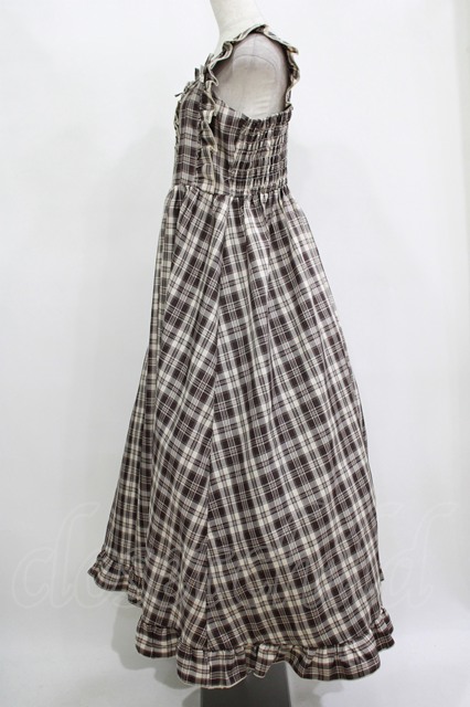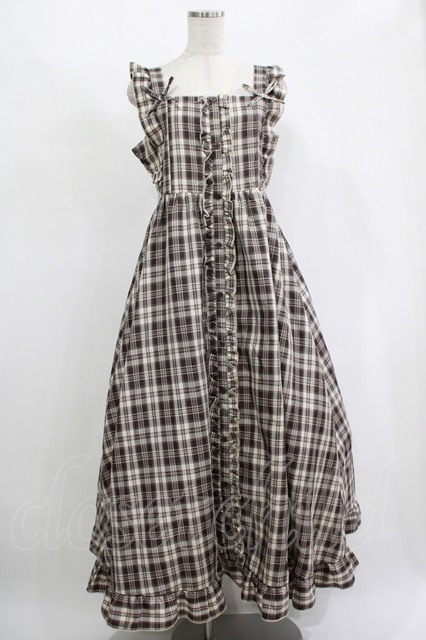 FLC / 皆方由衣コラボ/チェックフリルジャンパースカート L ブラウン H-25-11-15-1020-LO-OP-NS-ZH [2100030000077891-H-25-11-15-1020-LO-OP-NS-ZH]