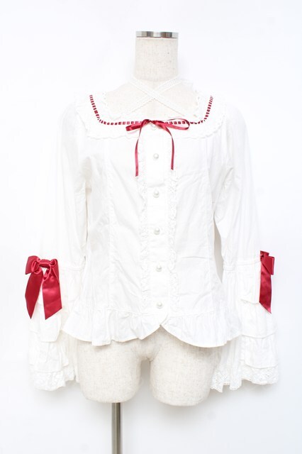 BABY,THE STARS SHINE BRIGHT / Pure Pearl bouquetスクエアネック姫袖ブラウス 赤 Y-25-11-09-062-BA-TS-SZ-ZY