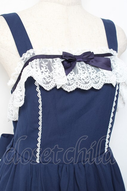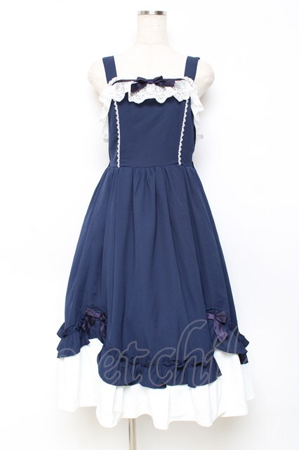 Chalmiere / 不思議の国のジャンパースカート 紺 Y-25-11-09-098-LO-OP-SZ-ZY