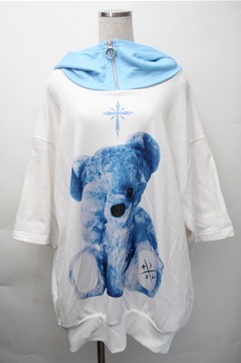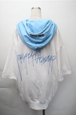 TRAVAS TOKYO / ハーフZIPクマ半袖プルオーバーパーカー 白xサックス S-25-11-09-024-PU-TO-HR-ZS [2100020000025869-S-25-11-09-024-PU-TO-HR-ZS]