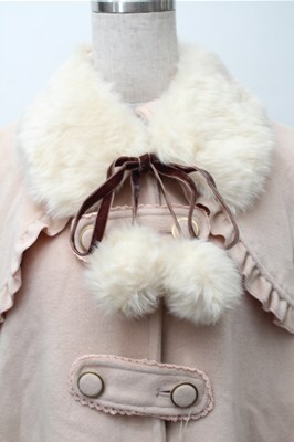 Ank Rouge / ファー襟ケープコート ピンク S-25-11-09-041-CA-CO-AS-ZS