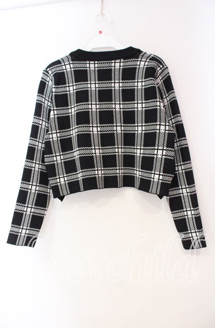 NieR Clothing / ポケット付き高品質ショート丈カーディガン ブラック×ホワイト O-25-11-10-095-PU-TO-IG-OS