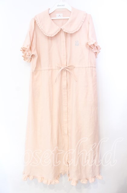 merry jenny / bear刺繍ドロストガーゼワンピース ピンク O-25-11-10-061-LO-OP-IG-OS