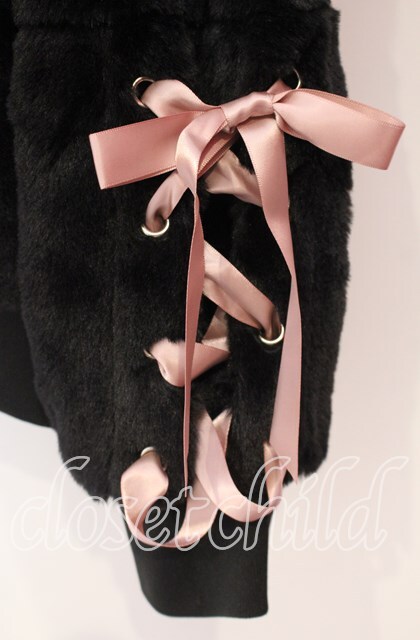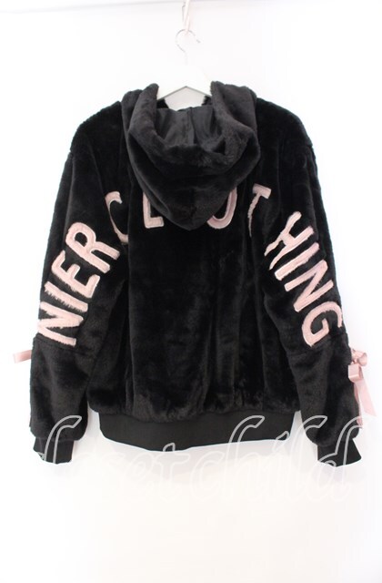 NieR Clothing / 超ふわもこスリーブレースアップバックロゴジップアウター ブラック×ピンク O-25-11-10-098-PU-CO-IG-OS