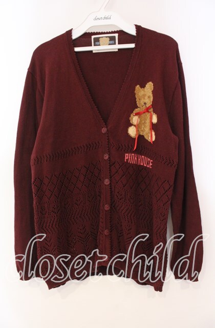 PINK HOUSE / ロゴリボン使いくまちゃんカーディガン ワイン O-25-11-10-075-LO-TO-OW-OS