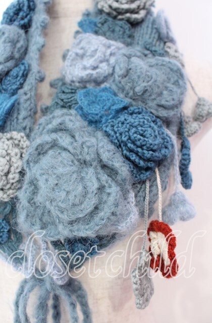PINK HOUSE / フラワーモチーフモヘアティペット ブルー O-25-11-10-009-LO-ZA-IG-OS