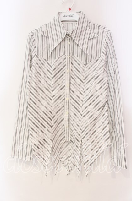 PEACE NOW / 変形襟ストライプブラウス M ホワイト O-25-11-10-070-PU-BL-OW-OS