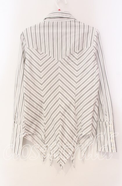 PEACE NOW / 変形襟ストライプブラウス M ホワイト O-25-11-10-070-PU-BL-OW-OS [2100080000064115-O-25-11-10-070-PU-BL-OW-OS]