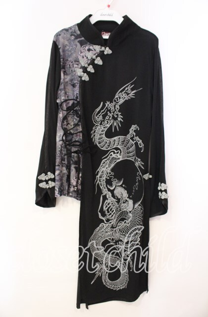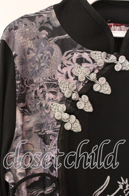 Qutie Frash / 和柄チャイナカットソー ブラック O-25-11-10-051-QU-TO-IG-OS [2100080000063996-O-25-11-10-051-QU-TO-IG-OS]