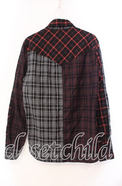 JURY BLACK / パターン切り替えシャツ レッド×ブラック O-25-11-11-078-GL-BL-OW-OS
