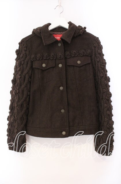 PINK HOUSE / ローズモチーフニット切り替えジャケット ブラウン O-25-11-11-057-LO-JA-IG-OS [2110060000000649-O-25-11-11-057-LO-JA-IG-OS]