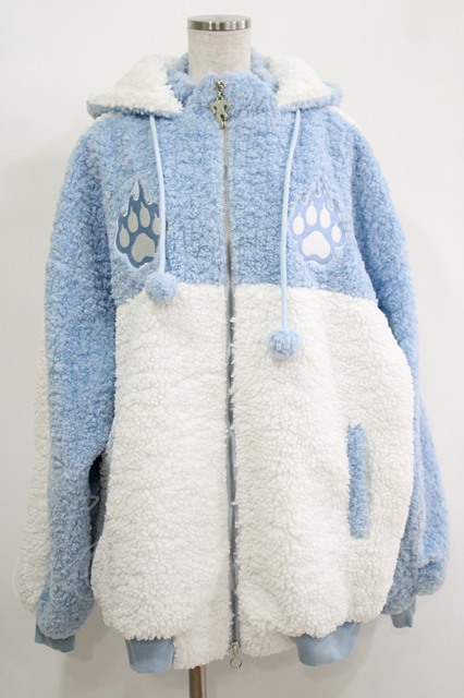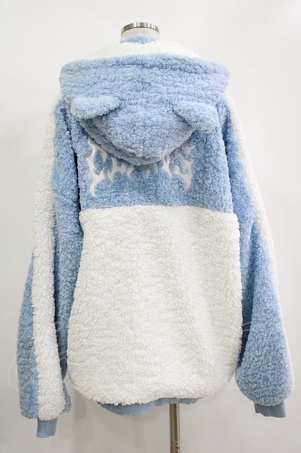 LISTEN FLAVOR / 猫耳肉球ファイヤーボアブルゾン ライトブルー×ホワイト H-25-11-17-035-PU-JA-KB-ZH [2100030000055150-H-25-11-17-035-PU-JA-KB-ZH]