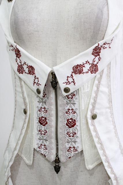 Ozz oneste / 薔薇刺繍オーバー付きベスト 白 H-25-11-17-020-OO-TO-KB-ZH