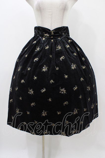 axes femme / 総刺繍ベロアスカート M ブラック H-25-11-18-1028-AX-SK-NS-ZH