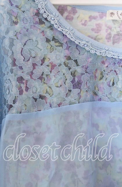 axes femme / レースシフォンレイヤード風トップス サックス O-25-11-11-2059-AX-TO-IG-OS