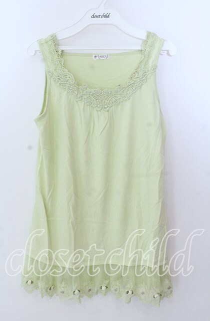 axes femme / 立体お花付きロングタンク ライトグリーン O-25-11-11-2049-AX-TO-IG-OS [2100080000064482-O-25-11-11-2049-AX-TO-IG-OS]