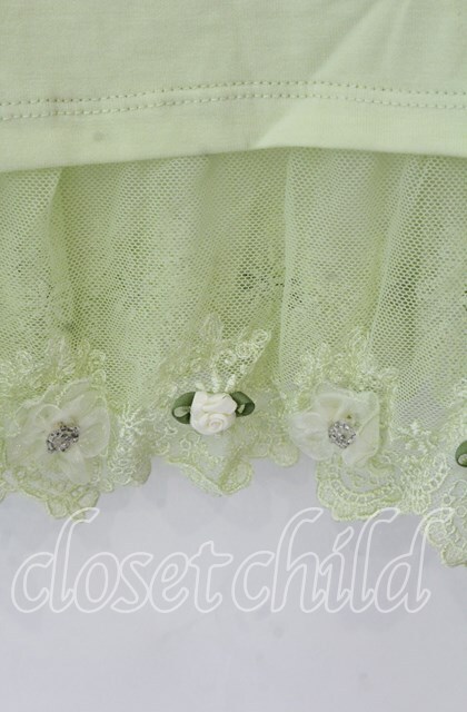 axes femme / 立体お花付きロングタンク ライトグリーン O-25-11-11-2049-AX-TO-IG-OS