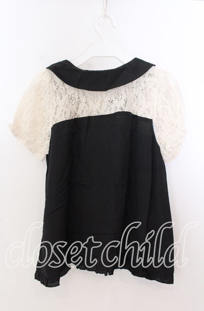 axes femme POETIQUE / レース切り替え襟付きトップス クロ×アイボリー O-25-11-11-2060-AX-TO-IG-OS [2100080000064493-O-25-11-11-2060-AX-TO-IG-OS]