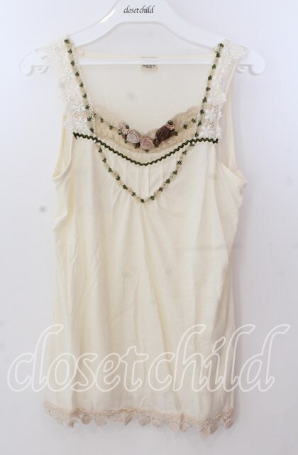 axes femme / 巻き薔薇タックタンクトップ アイボリー O-25-11-11-2045-AX-TO-IG-OS