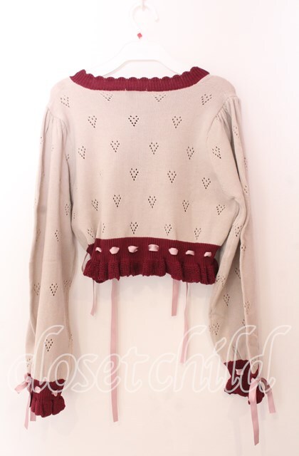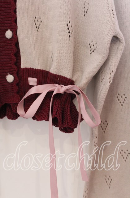 axes femme / ハート透かし編みニットカーディガン アイボリー×ワイン O-25-11-11-2016-AX-TO-IG-OS