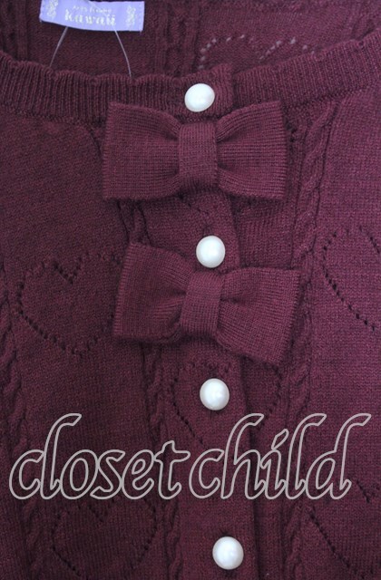 axes femme kawaii / ハート透かし長袖ニットカーデ ワイン O-25-11-11-2078-AX-TO-IG-OS