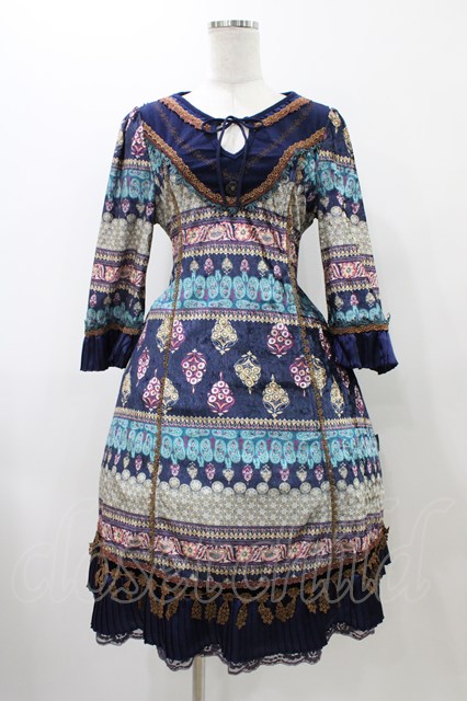 Ozz oneste / プリントベロアワンピース ネイビー H-25-11-19-1018-OO-OP-KB-ZH