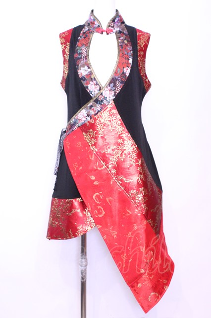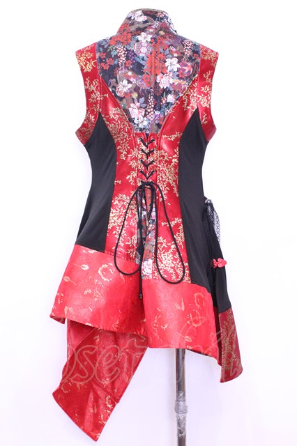 Qutie Frash / 胸開きチャイナチュニック レッド O-25-11-13-015-QU-OP-OW-OS
