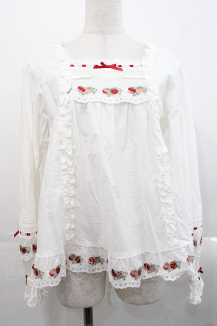 PINK HOUSE / いちごレース使いブラウス 白X赤 I-25-11-12-012-LO-BL-SA-ZI
